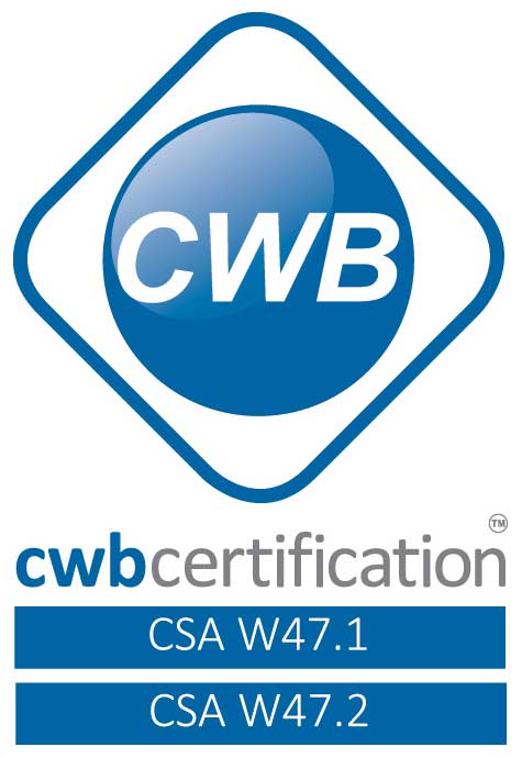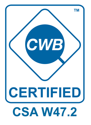 Our work is accredited with the certifications of CSA W47.2 and CSA W47.1 by the Canadian Welding Bureau